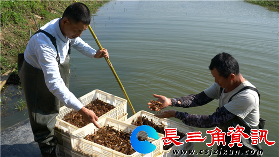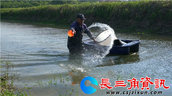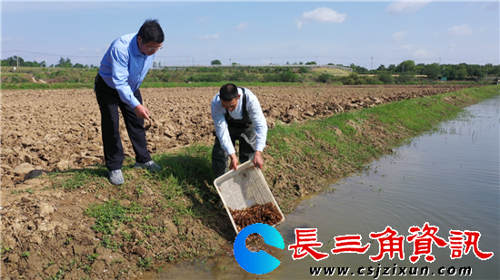 长三角资讯讯 5月10日晨光初显,位于句容市后白镇延福村的后白良种场田埂上,已缀满来回忙碌的脚印,农场工人们正把200斤小龙虾苗投放到有机稻田环沟里,他们也是在播撒着一年丰产增收的新希望。