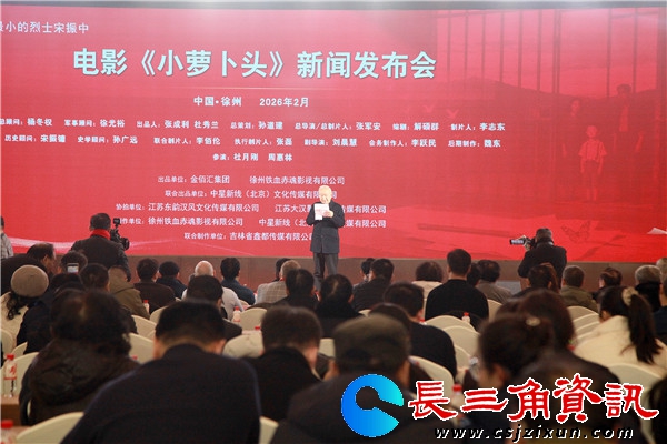 长三角资讯 2月9日,电影《小萝卜头》新闻发布会在徐州召开。活动由山东金佰汇集团、徐州铁血赤魂影视传媒有限公司共同主办。发布会围绕“小萝卜头”宋振中的生平事迹、其与徐州的历史渊源以及电影剧本创作过程展开介绍。电影出品方及相关部门负责人出席了发布会。