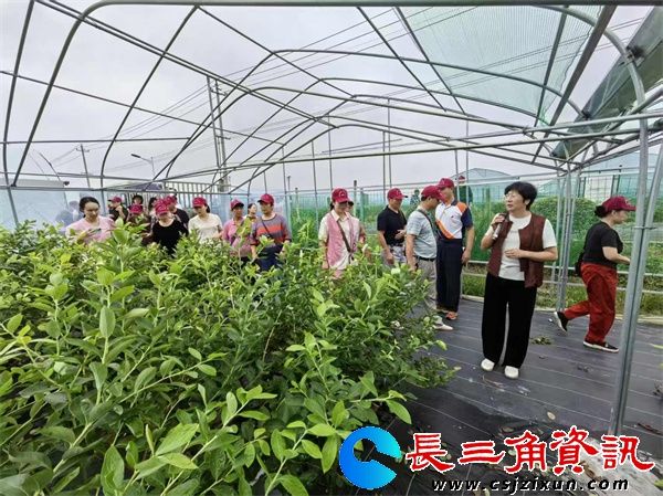 最后一站是充满田园野趣的欧毛渎村蓝莓园。虽然并非蓝莓采摘季,但置身于规整的田园之中,呼吸着清新的空气,感受着乡村的宁静与祥和,老同志们依然兴致盎然,对未来的丰收景象充满期待,也对乡村振兴战略带来的乡村巨变发出了由衷的赞叹。