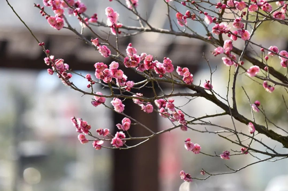 梅花迎风绽,美景醉游人。走进寻芳坡公园、爱巢公园、伴园等城区口袋公园,一朵朵粉红色的梅花跃然枝头,娇艳欲滴,清气怡人。漫步在公园里,可一边行走锻炼一边赏美景。