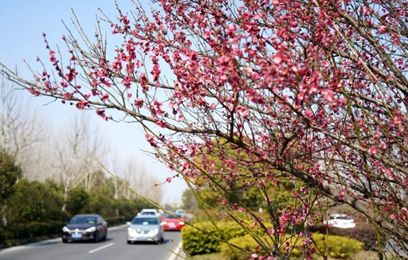 春风送暖红梅开,朵朵花儿放光彩。在滨湖大道和北外环,无论坐在公交车里还是自驾,都能看到道路中间绿化带尽是粉色的梅花,似是在欢迎远方归巢的游子,也似在欢迎专程来巢湖游玩的客人。