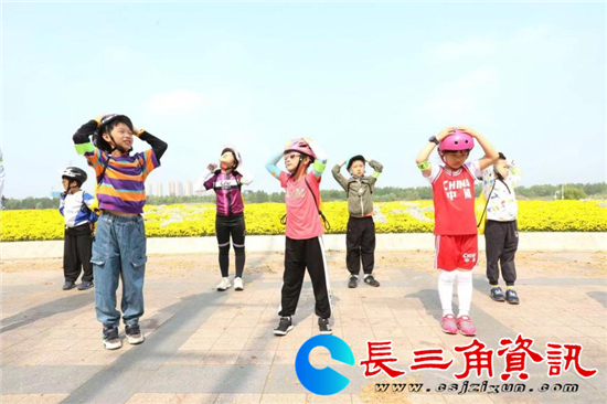 当天9点,25组参与活动的亲子家庭准时到达本次骑行活动的起点——左岸花海。在听完骑行教练讲解骑行知识后,小朋友们认真地做起了热身运动。热身结束后,骑行队伍越过起点,骑行在景色秀丽、繁花盛开的建邺赛道。