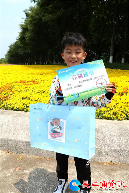 据了解,此次骑行活动,主办方还特别增加了藏宝环节。花丛中、树枝上、灯塔下……精美的礼品卡遍布在鱼嘴公园内,小选手们认真搜索,每找到一张卡片都会欢呼雀跃。