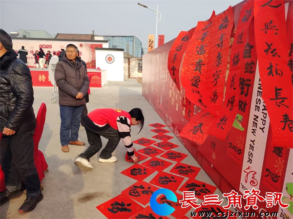 长三角资讯 1 月 23 日上午,南通市崇川区书法爱好者徐健应通州区书法爱好者之邀,早早抵达通州区平潮镇赵甸社区文化广场,参与“新春送福送对联进社区”活动。活动现场热闹非凡,人头攒动,赵甸社区周边 200 多位群众纷纷请书法爱好者题福写春联。“麻烦您给我写个福”“麻烦您给我写副窄一点的对联,我家门框小”“麻烦您给我写个吉房出租”……面对社区居民的各种需求,书法爱好者们皆一一满足。