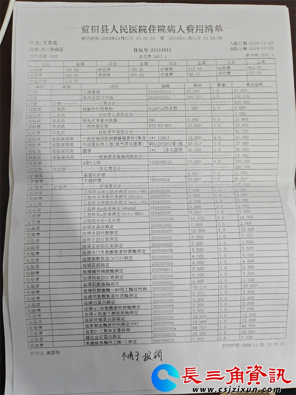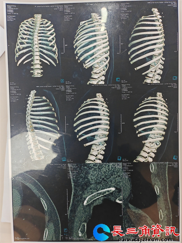 事发后,王其成被送往陕西蓝田县人民医院医治。在次日ct报告中明确记录:左肺上叶舌段、右肺中叶及双肺下叶炎症;以左肺下叶较著左肺上叶磨玻璃小结节;冠状动脉钙斑;左侧第4、6-10肋骨折。由于六根肋骨骨折,王其成疼痛难忍,甚至不能动弹,只得住院治疗。