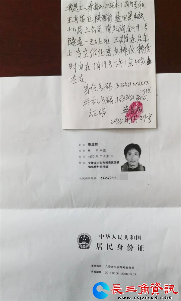 长三角资讯 2024年11月,家住安徽省六安市裕安区固镇镇关堰村蔡家湾组的王其成和同乡几位工友,一起来到中铁十八局集团有限公司西十高铁陕西段XSZQ一2标段项目隧道内作业。当月19日下午2点左右,因无任何安全防护措施,施工中,二衬班组的王其成正在电焊作业,突发“意外”,滑下摔落,当场短暂休克。