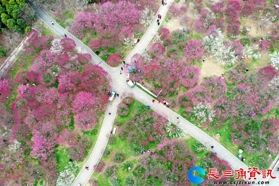 长三角资讯 2025年3月7日,安徽省淮南市舜耕山风景区梅园,市民踏青赏梅。春暖花开,万物复苏,各地春景如画,人们走出家门,乐享春光。(陈彬 文/图)