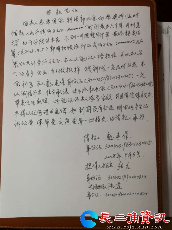 魏建保和妻子张莲经营多家大型超市卖场,开豪车、住别墅,坐拥多处房产,富甲一方;内弟张龙是江苏省溧阳市光华中学公办学校老师;独子魏玮是部队飞行大队军官。除本人已确认投资的股金400万之外,魏建保一家想继续向本人借款。架不住魏家四人轮番上阵、软磨硬泡,2018年9月,我向魏建保出借930万元借款,约定月息两分,半年内还清,魏建保亲手写借款凭证,张莲、张龙作为连带保证人签字,以其三人全部家当抵押担保。