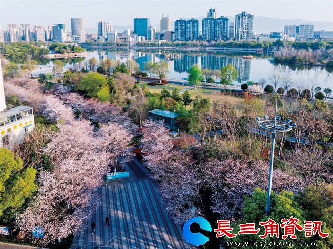 长三角资讯 3月23日,金华开发区国际友城公园内樱花悄然绽放,粉白色的花朵缀满枝头,为春日添了一抹浪漫色彩。