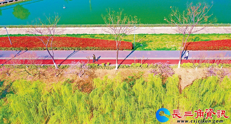 长三角资讯 春日的慈湖河,碧波荡漾,两岸新绿如茵,宛如一幅徐徐展开的生态画卷。河岸两边盛放的桃花与绿柳相映成趣,人们三五成群地漫步在河畔步道上,时而驻足拍照,时而欢声交谈。