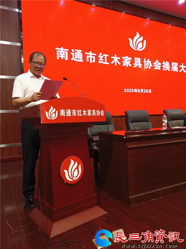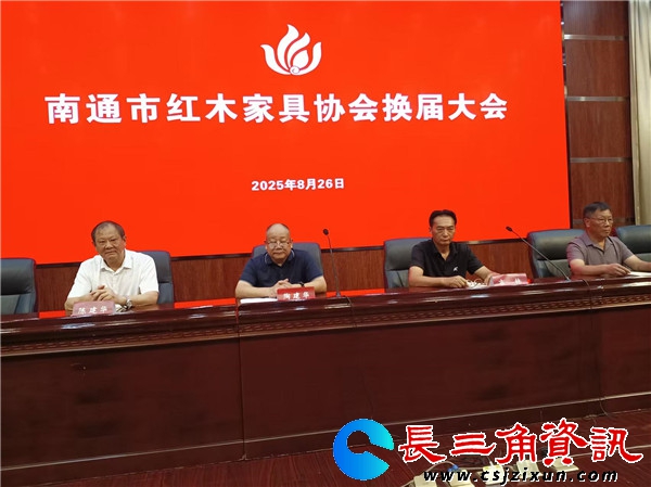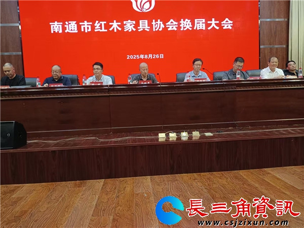 长三角资讯 8月26日下午,南通市红木家具协会在南通职业大学报告厅举行换届大会,选举产生第三届理事会领导班子。市工信局党组副书记、副局长储育新,市民政局党组成员、副局长肖四军应邀出席会议。