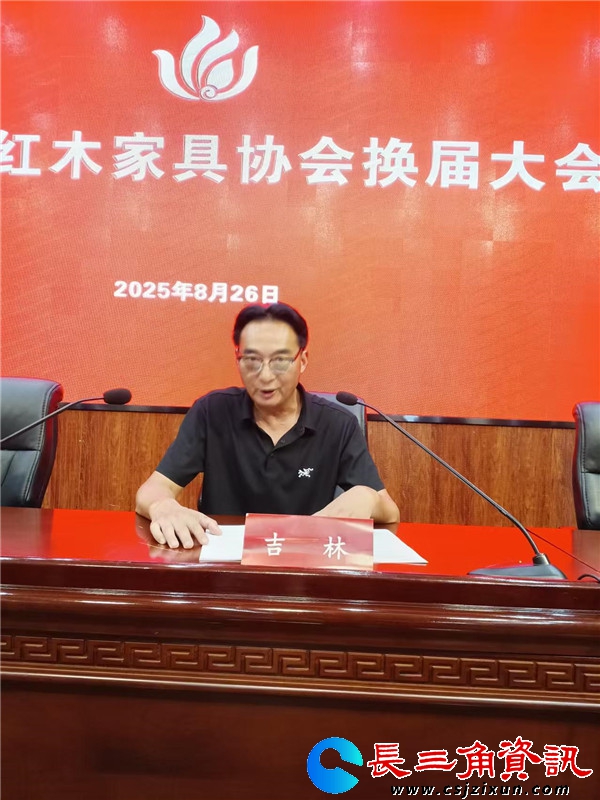 协会第二届理事会会长吉林作工作报告。他说,自 2019 年第二届理事会成立以来,协会始终秉持 “服务会员,传承中国古典家具文化,推动南通市红木家具产业发展”